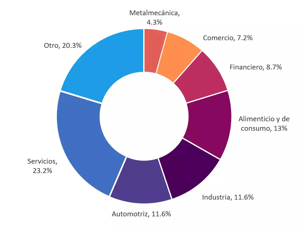 *Otro: Construcción (renta y venta de estructuras metálicas-andamios), textil, energía, seguridad privada, transporte, agricultura, tecnología, educación.