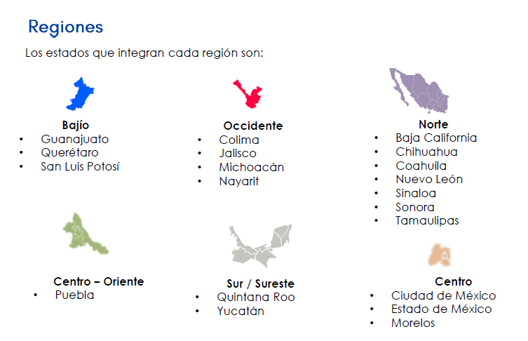 La muestra de empresas participantes en México se dividió en 6 regiones geográficas de acuerdo con el lugar donde tienen operaciones.