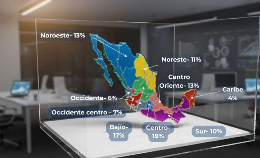 El siguiente mapa muestra el porcentaje de participación de las empresas en el sondeo, segmentado por regiones.